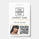 Una insignia de negocio personalizada minimalista moderna con logotipo de empresa, código QR y foto. Personalice con su logotipo, código QR, foto y detalles para crear su propia y elegante insignia de negocio blanca. Personalice aún más con un fondo de color o fuente personalizada.