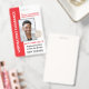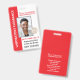 Creador de credenciales de entrada de instalaciones de color rojo y blanco con texto vertical en negrita ideal para la identificación departamental específica. Cargue fácilmente varios logotipos y una foto del empleado. Puede colgar de una correa a juego que también contiene la tarjeta de identificación de la empresa. Esta credencial es versátil para correas de color rojo, blanco y gris. Perfecto para instalaciones de ingeniería, atención médica o aplicación de la ley donde la identificación del personal es importante. Perfecto para edificios gubernamentales donde los empleados tienen diferentes autorizaciones.