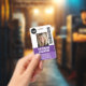 Un diseño empresarial básico que destaca los logotipos de su oficina y el nombre del empleado. Puede agregar un código de barra de exploración en la parte frontal y posterior. También puede cambiar el color del fondo.