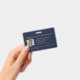 Mejore su seguridad corporativa con nuestro distintivo fotográfico de identificación de empleado Personalizado. Con una foto, nombre y título de un empleado de personalizable en la parte delantera, esta insignia exuda profesionalismo y funcionalidad. La parte posterior ofrece espacio para un logotipo personalizado, nombre de la empresa y dirección, o texto personalizado, que proporciona una identificación completa para su personal. Con un rico fondo azul marino y una tipografía gris clásica, esta insignia ofrece un diseño moderno y minimalista adecuado para cualquier tipo de negocio. Elevar su marca corporativa y medidas de seguridad con nuestra solución de identificación de personalizable.