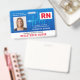 Insignia moderna de enfermera/ empleado médico con antecedentes médicos azules, foto única, logo, nombre y ubicación.