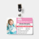 Esta tarjeta de identificación infantil es perfecta para su hijo. Contiene colorantes rosas, junto con texto negro en el frente para la dirección, estadísticas como altura, peso, tipo de sangre y fecha de nacimiento. También hay espacio para añadir números de contacto de emergencia y nombres. ¡Reemplace la imagen de plantilla con la de su hijo también! En la parte posterior de la tarjeta hay espacio para otra información importante que incluye alergias, necesidades especiales, apodos, afecciones médicas, etc. Muestra de fotografía © Storytree Studios, Stanford, CA