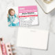 Esta tarjeta de identificación infantil es perfecta para su hijo. Contiene color rosa, junto con texto negro en la parte frontal para la dirección, estadísticas como altura, peso, tipo de sangre y fecha de nacimiento. También hay espacio para agregar números de contacto de emergencia y nombres. ¡Reemplace la imagen del modelo con la de su hijo también!