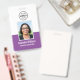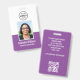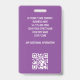 Crea un aspecto profesional con esta elegante placa de identificación. Una plantilla sencilla personalizada con su foto de identificación, nombre, título de trabajo y logotipo de la empresa. Los detalles de devolución están en la parte posterior, junto con información adicional, y un código QR escaneado. Todo el texto se puede personalizar o eliminar para adaptarlo a sus necesidades empresariales. Este diseño versátil se adaptaría a muchos lugares de trabajo y profesiones diferentes, incluidos profesionales de empresas, consultores de negocios, trabajadores minoristas, personal médico y más. Colores impresos: morado, gris y blanco. Formato vertical.