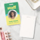Cinturón de identificación vertical de una cara para su personal en un diseño retro en verde, amarillo y azul. Personalice con la foto de su empleado, nombre y título debajo del personal en una fuente amarilla negrita que llama la atención. La insignia es simple y fácil de leer, impresa sin logotipo, en colores negrita y alegre.