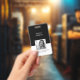 Tarjeta De Identificación Foto de la compañía en blanco y negro vertical