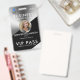 Elegante y elegante tarjeta de identificación de fotografía de plata y Negros para pequeñas empresas con código QR y tarjeta de identificación fotográfica Fácilmente personaliza el diseño para hacer que sus insignias sean totalmente únicas para el evento de su empresa. Código QR de seguridad adicional y texto personalizado en la parte posterior para términos y condiciones u otros detalles.