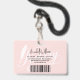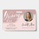 Banda notarial moderna y elegante. El diseño presenta el guión de tipografía ''Notary'' con una pluma de plumas elegante , su foto, detalles sobre el fondo dorado rosado y rosa en el frente. Personaliza más con información adicional y detalles en la parte posterior. Perfecto para notario público, notario móvil, agentes de firma de préstamos, etc.