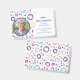 Crea coloridas tarjetas de identificación de empleados para alegrar el día. Colorido y moderno patrón de círculos acentúa la foto del empleado. Perfecto para el personal escolar que incluye profesores, bibliotecarios, directores, secretarios y otros empleados. Incluya el nombre, el cargo, el nombre y el lema de la escuela.