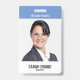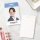 Una moderna tarjeta de identificación para su personal y empleados con una gran y prominente foto de identificación. Ideal para el personal de oficina, los empleados de seguridad y el personal médico y hospitalario. La parte posterior se ha dejado en blanco en esta plantilla y está abierta para que añada más información.
