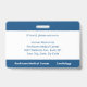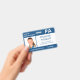 Mantenga su hospital o práctica médica a salvo con insignias horizontales de identificación con foto del personalizado que incluyan la foto, el nombre, la abreviatura profesional del trabajo, el título de trabajo, el número de identificación y el nombre comercial de su empleado. También se puede incluir un departamento. Perfecto para un asistente médico, enfermera u otro personal. En la parte posterior puede agregar más información, como dónde devolver la insignia si se pierde. Personalizar con una foto y un texto personalizado en la barra lateral. La foto cuadrada de la izquierda tiene un delgado borde blanco rodeado de rayas azules por los lados, en la parte superior e inferior, y delgadas líneas azules. Un bloque blanco en el lado central derecho resalta el título del trabajo, el número de identificación y la fecha de caducidad en texto azul oscuro. El nombre del personal, la sigla de trabajo y el texto de hospital o de negocios son blancos en azul. Puede cambiar el fondo y los colores del texto para que coincidan con su marca pulsando "haga clic en el personalizar más adelante". También puede agregar un clip metalizado, un patio o un accesorio retráctil en la barra lateral. Vea más insignias de identificación en la colección Rocklawn Arts. Copyright ©Claire E. Skinner. Todos Los Derechos Reservados.