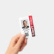 Tarjeta profesional de seguridad con foto de perfil y logotipo de la compañía. Esta plantilla editable se puede personalizar con una foto, nombre, cargo, número de identificación, empresa, fecha de vencimiento, código QR y logotipo para la marca. Un diseño moderno con rayas de gradiente y un tipo de letra limpio. Ofrece texto de personalizable completo para adaptarse a su marca comercial. Ideal para diversos lugares de trabajo y funciones, como guardias de seguridad, oficiales de escolta, seguridad privada corporativa, seguridad de tienda, guardaespaldas personales, portero oficial, equipo de eventos, asistentes minoristas, personal médico, pase para pequeñas empresas, etiquetas de nombres de conferencia y más! Colores impresos: negro, blanco y rojo. Comprar la colección para obtener ideas y suministros de productos de seguridad más populares en línea.