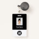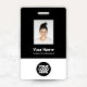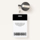 Personalice fácilmente este distintivo de nombre de empleado de Personalizado blanco y negro con foto, código de barra de exploración y logotipo de negocios. Un sencillo diseño de negocio con colores estándar monocromáticos, personalizable completo en tamaños frontales y posteriores, fuentes sans-serif básicas y modernas y un aspecto profesional y claro. Disponible con patio, clip metalizado o retráctil. Sin orden mínima.