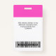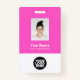 Personalice fácilmente este neón fuchsia frambuesa Personalizado rosa Nombre de empleado con foto, escaneo Código de barras y logotipo de negocios. Un sencillo diseño de negocios con colores estándar color rosa y blanco fuchsia carnoso y adornado con personalizable completo en tamaños frontales y traseros, sans-serif, fuentes básicas y modernas y un aspecto profesional y claro. Disponible con patio, clip metalizado o retráctil. Sin orden mínima.