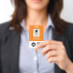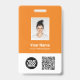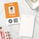 Personalice fácilmente este distintivo de nombre de empleado del Personalizado con foto, escanear código QrCode y código de barras y logotipo de negocio. Un sencillo diseño de negocio en colores naranja brillante y blanco personalizable completamente en tamaño frontal y trasero, sans-serif fuentes básicas y modernas y un aspecto profesional y claro. Disponible con patio, clip metalizado o retráctil. Sin orden mínima.