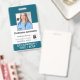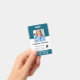 Plantilla básica de diseño empresarial que ofrece la ubicación del logotipo de su empresa, el nombre del empleado, el número de identificación y otros cuadros de texto generosos para obtener información. Puede agregar un código de barras escaneable en la parte posterior, así como modificar el color de fondo.