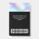 Personalice fácilmente esta Tarjeta de identificación holográfica personalizada de empleado en negro pastel con foto, código de barras y logotipo comercial. Un diseño empresarial moderno y audaz con colores pastel suaves totalmente personalizable en tamaños delanteros y traseros, fuentes básicas y modernas sans-serif y un aspecto profesional y fresco. Disponible con cordón, clip metálico o retractil. Sin pedido mínimo.