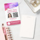 Edite fácilmente esta plantilla para cargar su propio ID Photo, Vaccine, código de barras o código QR e información personal. Ideal para cualquier trabajador asistencial, en el hogar o por cuenta propia. Más información de "devolución amable" en la espalda. Arte abstracto único con tonos acuáticos en rosa, violeta y dorado. Foto ID Código de barras de vacunación Código QR Insignia rosa polvorienta.