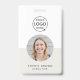 Tarjeta de identificación corporativa sencilla y elegante que se puede personalizar fácilmente con la foto de identificación de su empleado, nombre, posición, logotipo de la empresa, detalles de negocio y código QR o código de barras. El diseño es elegante y cuenta con una moderna tipografía minimalista y una pancarta en color gris de piedra que destaca entre la multitud.