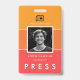 Un nombre moderno y minimalista y placa de foto ID de prensa, perfecto para cualquier profesión de noticia: periodistas, reporteros, fotógrafos, etc... Colores de fondo completamente de personalizable. También puede agregar fácilmente su código de barras o código QR para seguridad.