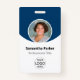 Personalice estas insignias verticales azules para los empleados con una foto para los empleados, el logotipo de la empresa, el código de barras, la identificación de los empleados y el nombre.