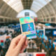 Una insignia de identificación de negocio para empresas que incluye una foto personal, el logotipo de la empresa y el nombre de la empresa.