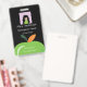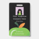 Una insignia negra vertical para cualquier miembro del personal de la escuela con parte de una manzana verde. Personalízala con la foto del empleado, nombre, título del trabajo, nombre de la escuela y la dirección del establecimiento. Un pequeño rectángulo blanco se proporciona en la parte posterior para la firma del maestro o un código de barras. Este diseño también está disponible en blanco y verde claro.