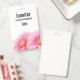 Una etiqueta con una fotografía de un par de gerbera rosas. Elegante y con estilo.