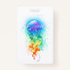 Grandes medusas de azulejo brillantes, de dibujos artísticos, con largos tentáculos en blanco, pintadas con fondo multicolor de acuarela. Mariscas arcoiris.