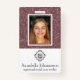Esta elegante y glamorosa placa de identificación personalizado presenta un diseño rosa purpurina, negro y blanco con una foto de muestra que se puede reemplazar con su propia foto o imagen. Una foto de ejemplo se imprime sobre un fondo falso de color rosa purpurina y se imprime un logotipo debajo de la foto dentro de un área blanca sólida. Debajo del logotipo se imprime un nombre y un título de trabajo.