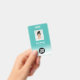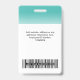 Personalice fácilmente esta Placa de Nombre de Empleado Personalizada con Foto, Código de Barras Escaneable y logotipo de la empresa con un gradiente ombre blanco en el color de fondo. Un diseño simple de etiquetas de nombre de identificación de seguridad personalizadas para empresas en colores azul turquesa vibrante y blanco totalmente personalizables en tamaños delanteros y traseros, fuentes básicas y modernas sans-serif y una apariencia profesional y clara. Las placas de identificación están disponibles con cordón, clip de metal o con retractil. Sin pedido mínimo.
