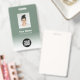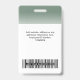 Personalice fácilmente este distintivo de nombre de empleado Personalizado con foto, código de barras de escaneo y logotipo de negocios con un gradiente oscuro blanco sobre un elegante color de fondo verde sabio. Un sencillo nombre de identificación de seguridad personalizado marca el diseño del negocio en colores minimalistas blanco y gris neutro completamente personalizable en tamaño frontal y trasero, sans-serif fuentes básicas y modernas y un aspecto profesional y claro. Las tarjetas de identificación están disponibles con patio, clip metalizado o retráctil. Sin orden mínima.