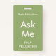 Tarjeta De Identificación Green sabio pregúntame distintivo para voluntarios
