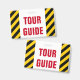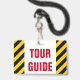 Características del este diseño de la insignia un modelo rayado negro y amarillo, junto con el mensaje "GUÍA TURÍSTICO" en texto rojo intrépido. Podría quizás ser llevado por alguien que da viajes a los turistas o a los visitantes.