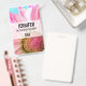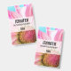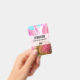 Una etiqueta con un nombre con una flor rosa y blanca vibrante. La fotografía de cerca de esta flor encantadora realmente llama tu atención.