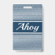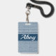 Diseño de texto Ahoy con decoración de rayas azules y blancas