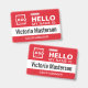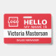 Personalice fácilmente esta placa básica personalizada de "Hola, mi nombre es" con el nombre del empleado y el título profesional. Disponible con diferentes colores de fondo y accesorios. Sin cantidad mínima de pedido.