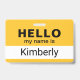 Personalice fácilmente esta placa de identificación de empresa de empleado básica personalizada "Hola, mi nombre es". Disponible con diferentes colores de fondo y accesorios. Sin cantidad mínima de pedido.