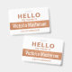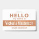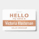 Personalice fácilmente esta placa básica personalizada de "Hola, mi nombre es" con el nombre del empleado y el título profesional de la empresa. Disponible con diferentes colores de fondo y accesorios. Sin cantidad mínima de pedido.
