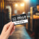 Personalice fácilmente este personalizado básico "Hola, mi nombre es" la insignia de la empresa de nombre de empleado. Disponible con diferentes colores de fondo y adjuntos. No hay cantidad mínima de pedido.