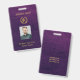 Personalizado identificación barber salon foto de empleado placa de foto en un elegante fondo de cuero púrpura con falsas tijeras de oro y logo de laurel y escritura tipográfica. +++++++++ Fácil de personalizar con su nombre comercial, logotipo, foto de empleado, nombre y título y su texto al revés. ++++++++++++ Adecuado para elegantes lujosos hombres peluqueros peluquería salón de belleza, tiendas de hombres o cualquier otro elegante negocio exclusivo profesional.