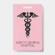 Un fondo rosa de dos tonos y un tipo de letra elegante añaden profesionalismo y facilidad de lectura a esta insignia de nombre. Personalice con nombre, título/credenciales del trabajo y departamento. Los tipos de letra y los colores de fuente se pueden modificar según se desee. El diseño inverso muestra el nombre del hospital y el símbolo caduceus. ¡Excelente para los trabajadores médicos en hospitales, oficinas de médicas, clínicas de internación y centros médicos! Diseño © W.H. Sim, todos los derechos reservados. Ver más en zazzle.com/expressionsoccasions