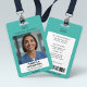 Esta elegante placa de color verde azulado es ideal para enfermeras y profesionales de la salud en diversos departamentos hospitalarios. Diseñado con un diseño vertical limpio, cuenta con una gran foto del empleado, nombre, departamento, título del trabajo y número de identificación para una clara identificación. La parte posterior proporciona espacio para los detalles de contacto de emergencia, un código de barras para un escaneo eficiente y el sitio web del hospital. Esta insignia es adecuada para diversos ambientes médicos, incluyendo servicios médicos quirúrgicos, unidades de cuidados intensivos (UCI) y otros departamentos hospitalarios, y combina seguridad, funcionalidad y un diseño moderno.
