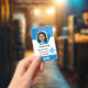 Tarjeta De Identificación Id. de empleado azul, foto, nombre