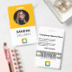 Insignia de identificación de foto de la facultad amarilla personalizado. Añade cualquier nombre comercial y de empleado, foto, logotipo, dirección, número de teléfono, sitio web y código de barras. Disponible en varios colores para sus necesidades de identidad empresarial.