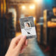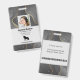 Identificación de empleado de la empresa con plantillas creadas para usted. El fondo es un abstracto moderno en gris plateado.