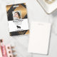 Tarjeta de identificación de empleado de la empresa con plantillas creadas para usted. El fondo es un abstracto moderno en negro, blanco y dorado.
