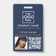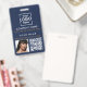 Una moderna insignia minimalista personalizada de negocios con el logotipo de negocios, el código QR y la foto. Personalice con su logotipo, código QR, foto y detalles para crear su propia y elegante placa comercial en blanco y azul. Personalizar aún más con un fondo de color personalizado o una fuente.