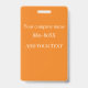 Esta placa de identificación para un trabajador voluntario o empleado presenta un fondo blanco con un logo de muestra en el centro. Puede personalizar el identificador para mostrar el logotipo de su empresa, empresa u organización, o su propia imagen personalizado. Hay un área debajo del logotipo para imprimir un nombre de empleado u otro texto. El título "VOLUNTEER" se imprime a la derecha sobre un cartel naranja. La parte posterior de la placa de identificación tiene un fondo de color naranja con texto en blanco donde puede incluir el número de teléfono de su empresa u otra información.