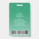 Representar su negocio con estilo, suministrando al personal tarjetas de identificación modernas y profesionales. El logotipo, la foto, el código de barras y todos los textos de esta plantilla son sencillos para el personalizar. El diseño verde y blanco presenta un fondo de gradiente oscuro con un arco curvo elegante, el logotipo de su empresa, una imagen cuadrada, el nombre y el título del empleado y el código de barras UPC en la parte posterior. Puede proporcionar organización y seguridad al personal de la empresa, al tiempo que presenta la marca corporativa con un elegante aspecto clásico.